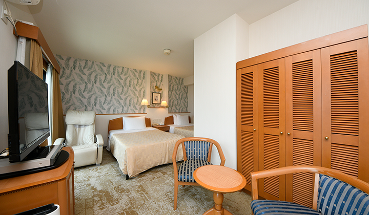 広く開放感のあるお部屋と全室バルコニー付きが自慢のツインルーム♪